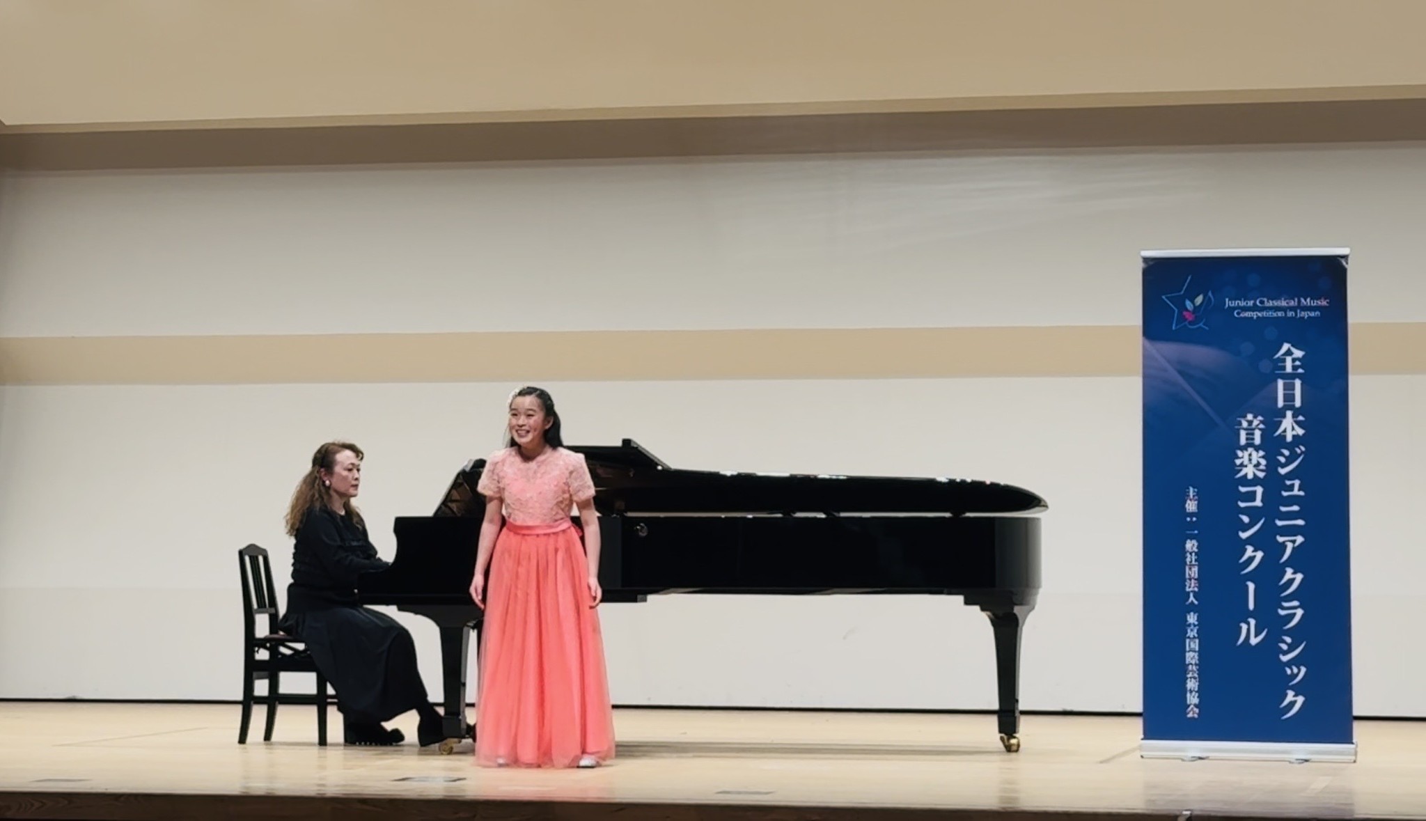 声楽部門小学生高学年の部第1位の中務結花さん(2026年3月24日江東区文化センター・ホールにて)